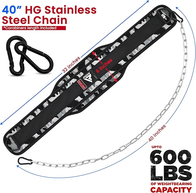 - UPTO 600LBS HIGHER WEIGHT CAPACITY Robust gym belt for weighted pull-ups is one of those few pieces of equipment that are not easy to find, and RDX is here to help its customers out of this tight corner. With the robust 36-inch-long 7-gauge HG stainless steel chain, this chained weight belt can bear a maximum of 600lb weight.