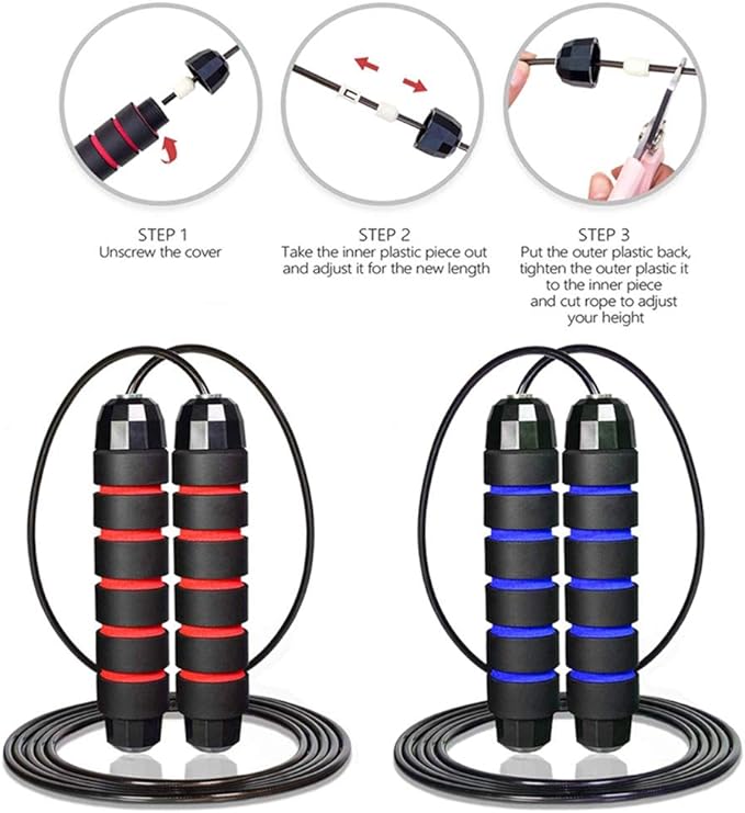 • [Adjustable Length & Comfortable Handles] The Jump rope design with 9.8 feet long of the rope, it can be adjusted quickly according to your height,suitable for men women and kids. 2 handles are wrapped in soft memory foam on the surface and feel exceptionally comfortable.Do skipping rope together with your family and enjoy a happy exercise time.