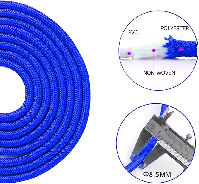 • The gold combination of 9mm braided cotton rope + 9mm solid PVC rope can not only prolong your jumping rope life by at least two times, but also make your jump rope freely switch from cotton rope to PVC rope, making your rope skipping more colorful.