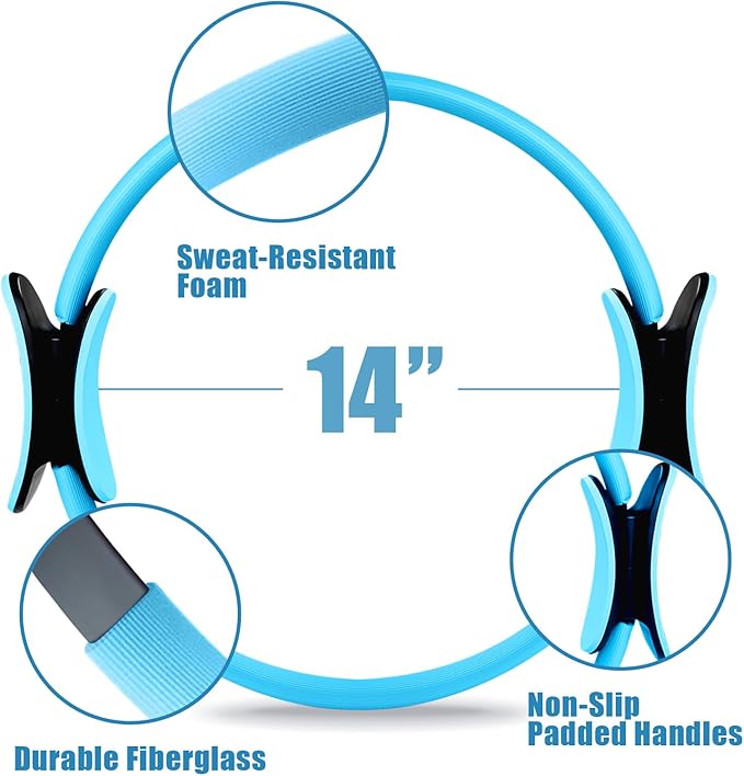 - PILATES RING CIRCLE: RitFit Pilates ring is made from durable fiberglass with EVA-material outer, the ring featuring elasticity will not break and still maintain its shape after strenuous exercises. Sleeved in soft and cushioned rubber with comfortable padded handles on both outside and inside ensure superior comfort in exercise.