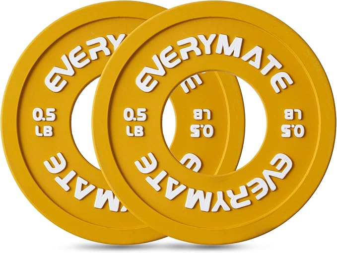 • SET OF 2 Plates: EVERYMATE fractional weight plates include 2 x ½ LB. Thanks to these lightweight fractional plates you can slowly increase your weight-bearing load by putting on an extra ½ LB. These fractional plates have 2-inch center holes and will fit on Olympic barbells and 1-inch barbells with an Olympic sleeve adapter