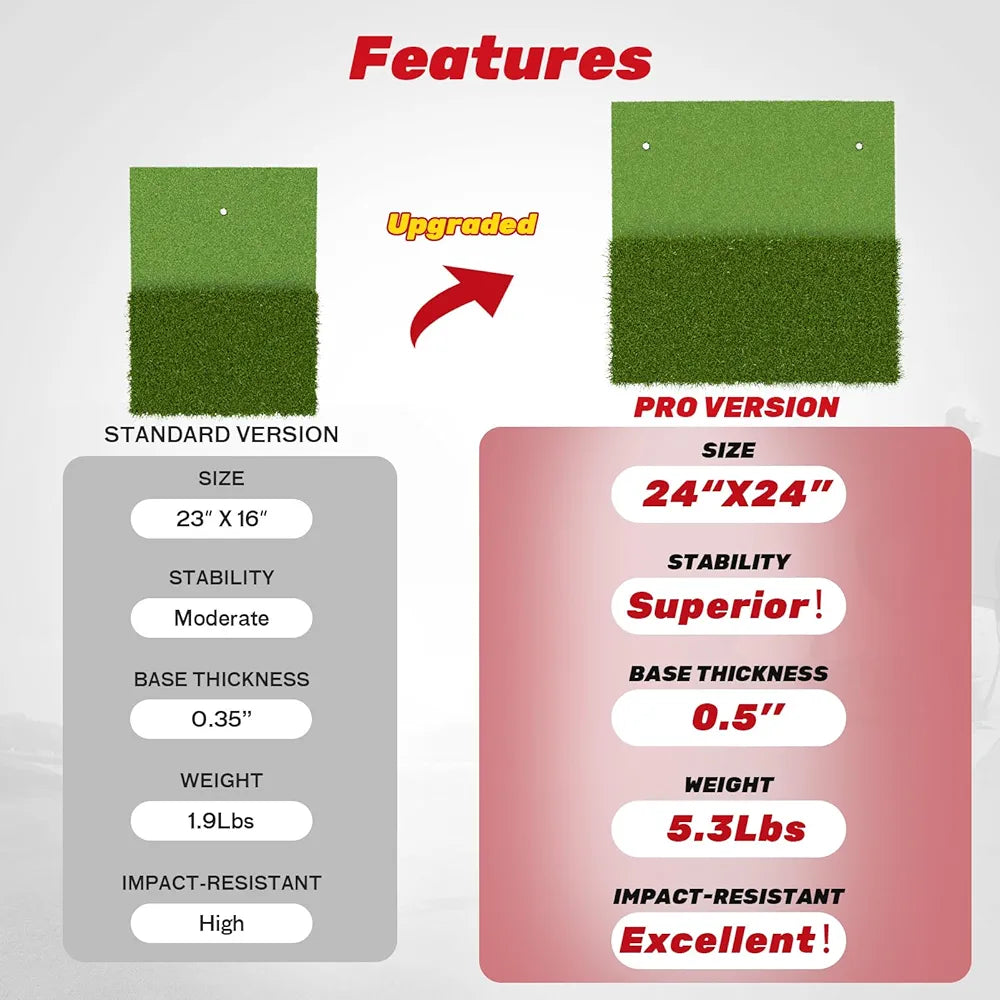 - 【Maximize Your Practice Space】 Immerse yourself in the expansive 24" x 24" dual-layer turf golf hitting mat, elevating the perfection of your swings. Meticulously crafted for extensive swing sessions, this mat comes with two rubber tees, providing you an exceptional practice arena