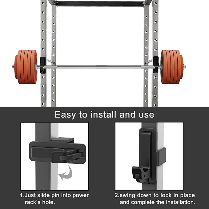 - 【Easy Installation】Just slide pin into power rack's hole, then swing down to lock in place and start the exercise/storage, like bench pressing, overhead press.
