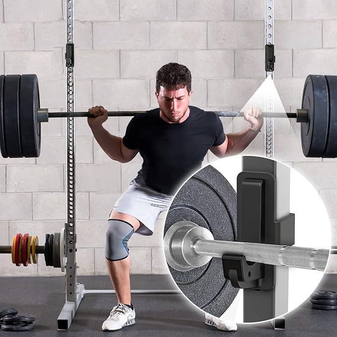 - 【Strong and safe】The J-hooks barbell holder is made of 0.3" thick solid steel and the hooks add a thick plastic protection layer for reducing noise during your workout session and protect your barbell from damage, can support to 1000lbs each hook.