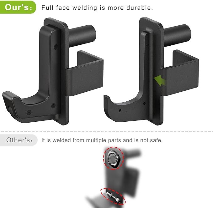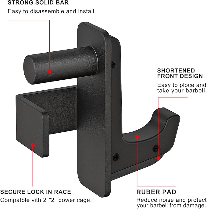 - 【Strong and safe】The J-hooks barbell holder is made of 0.3" thick solid steel and the hooks add a thick plastic protection layer for reducing noise during your workout session and protect your barbell from damage, can support to 1000lbs each hook.