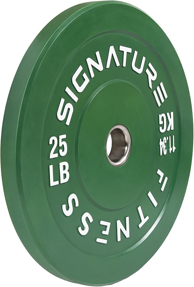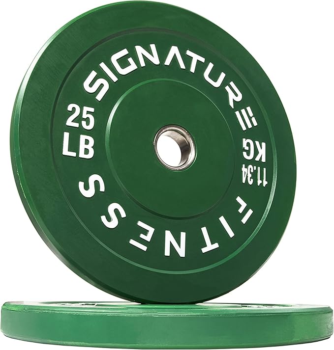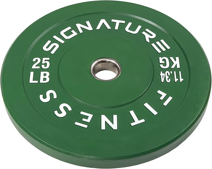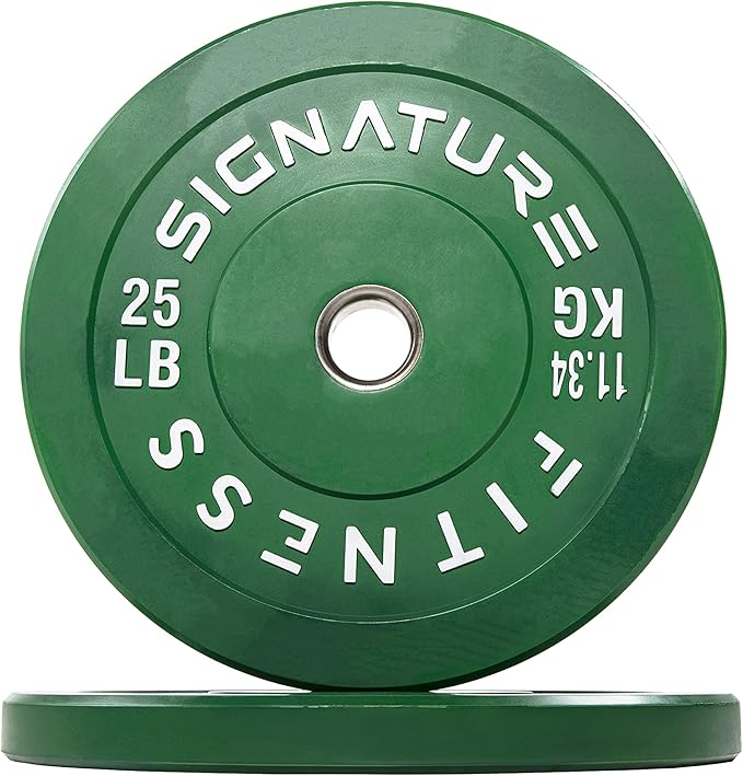 - 🌟 100% VIRGIN RUBBER - LOW ODOR AND BOUNCE 🌟 - Signature Fitness Bumper Plates contain NO recycled rubber. This means low to no odor, guaranteed durability, and low "dead" bounce for safety.