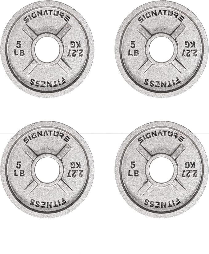 • ✅OLYMPIC STYLE PLATES – Constructed of Solid Cast Iron with a 2-inch machine drilled hole and durable Silver Enamel finish. Simple, classic, and tough enough to endure a rock-solid workout! Note: Each weight plate has a 2-inch center hole diameter that is designed to fit on standard Olympic Barbells.