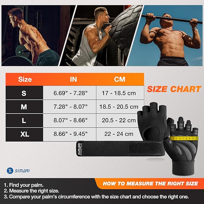 - SIMARI Workout Gloves Thicked Palm Pad & Shock Absorption Capability, Breathable & Comfortable, Protecting your hands Fully.