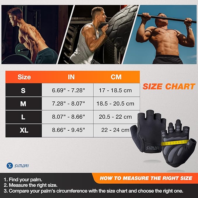 - SIMARI Workout Gloves Thicked Palm Pad & Shock Absorption Capability, Breathable & Comfortable, Protecting your hands Fully.