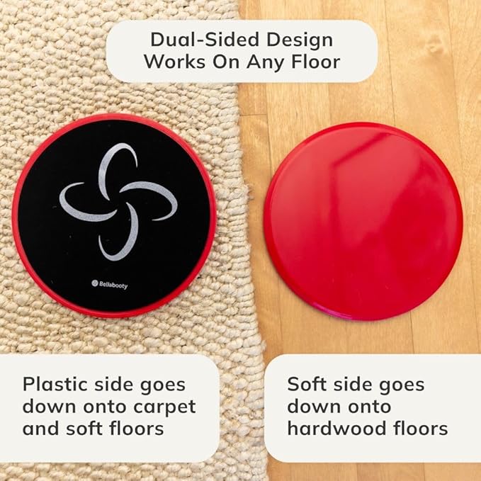 • Multi-Surface Compatibility: Dual-sided discs that smoothly glide on various surfaces, including carpet, hardwood, tile, and gym floors.
