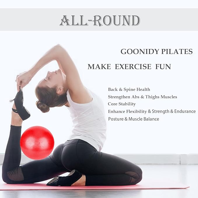 - PROFESSIONAL DESIGN - Made of soft, flexible, durable and skin-friendly PVC, can remain elastic and squishy even fully inflated. Special film attached to the surface, make Goonidy Pilates Ball smooth but non-slip, and can withstand 700lbs, not burst even if pierced by a sharp object.