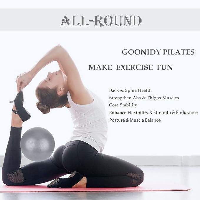 - PROFESSIONAL DESIGN - Made of soft, flexible, durable and skin-friendly PVC, can remain elastic and squishy even fully inflated. Special film attached to the surface, make Goonidy Pilates Ball smooth but non-slip, and can withstand 700lbs, not burst even if pierced by a sharp object.