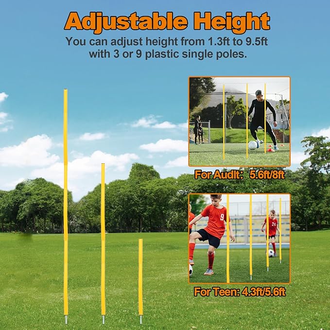 • 【Versatile and adjustable】- These Speed Jump Poles Training Equipment are highly adjustable, allowing you to customize the height to best suit your training needs. With multiple height options, these Poles are suitable for athletes of all ages and skill levels.