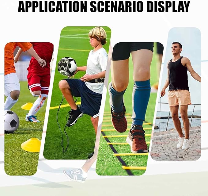 • 【Versatile】Use this soccer training equipment, football training equipment, baseball training equipment, basketball training equipment to create a variety of drills for improving speed, agility, coordination, footwork, balance, and explosiveness. Suitable for all ages including children, teens, athletes, coaches, sports enthusiasts and fitness enthusiasts.Speed Agility Training Kit is the perfect gift for your friends and family.