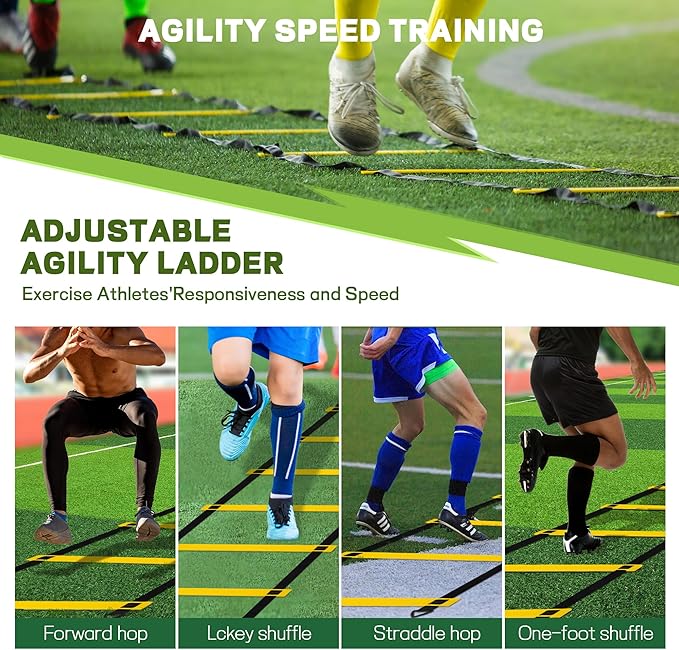 - Versatile Speed & Agility Training Set: Ideal for athletes of all ages, this training ladder set is perfect for soccer, football, rugby, basketball, and more. Enhance your footwork, speed, and coordination with this comprehensive soccer practice equipment kit.