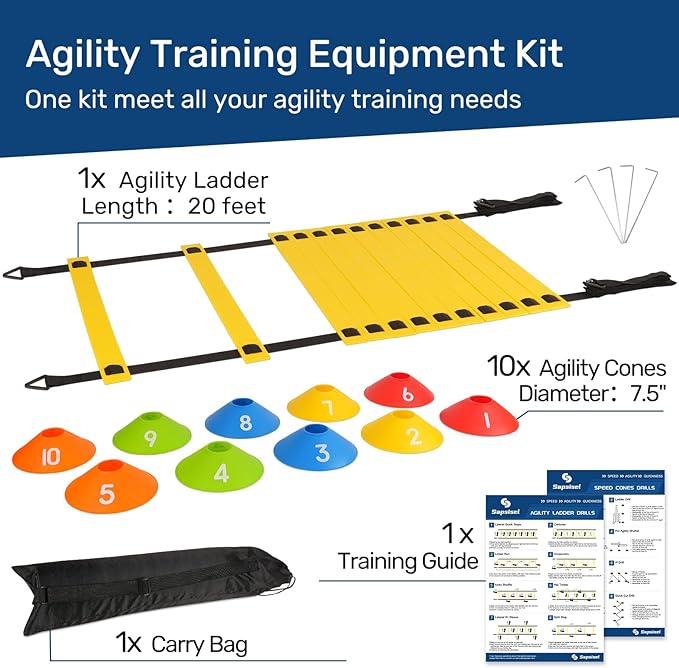 - 【Suitable for players of all levels】The agility training kit is a comprehensive set of equipment designed to enhance athletic performance through targeted agility training. It caters to athletes across various sports, including football, soccer, basketball, and more. This kit is ideal for improving speed, agility, coordination, flexibility and overall athletic prowess.