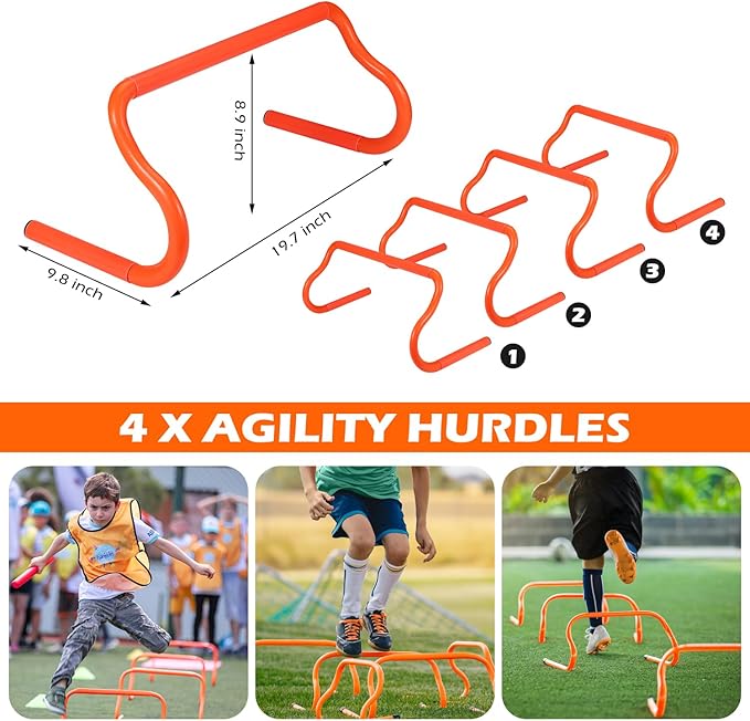 Soccer Training Equipment 20ft Agility 4 Hurdles, 12 Soccer