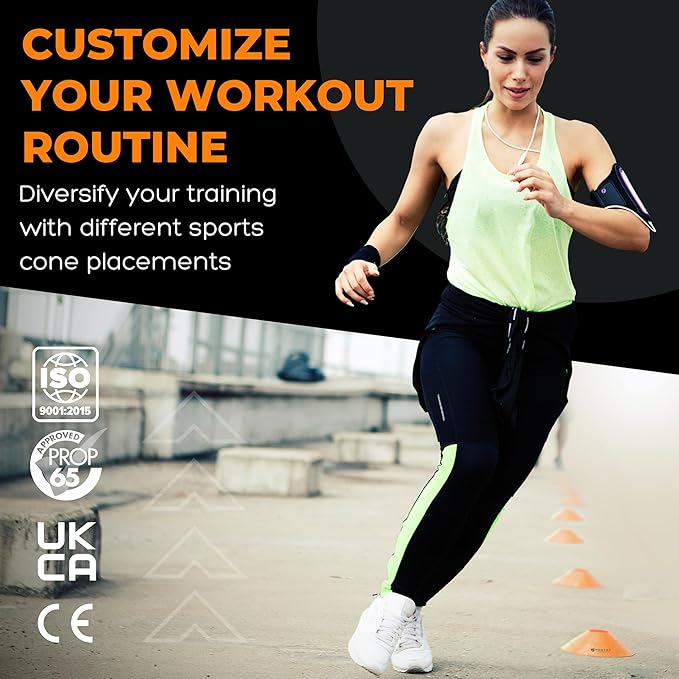 • Quick & Easy Set Up: Our soccer equipment with football cones is lightweight & portable. Set it up anywhere - on the track, in the field, at the gym or your own garden for perfect speed training.