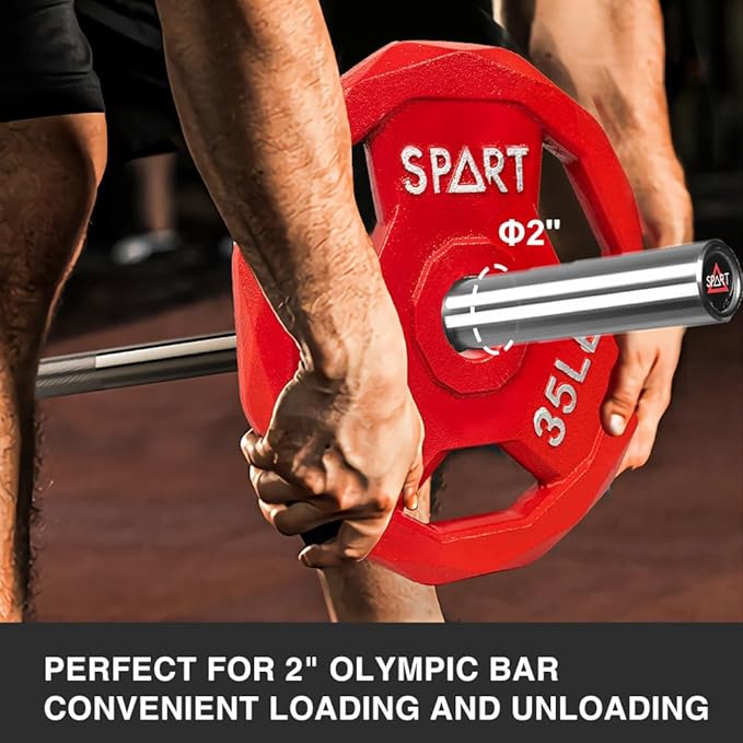 • 💪SIZE: SPART Upgrade Olympic weight plates can apply to all 2 inch Olympic bars. We have 2.5lb, 5lb, 10lb, 15lb, 25lb, 35lb, 45lb and different combinations.Each size comes in a different color,can be a great way to differentiate and decorate your home gym.You can choose what you want!