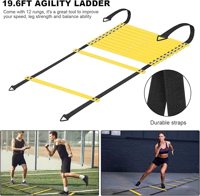 - ✅【Enhanced Agility Training】Improve balance, agility, speed, reaction time, footwork, coordination, and explosiveness with this professional-grade sports agility ladder training equipment. Take agility and speed to new level through footwork speed drills and resistance exercises.
