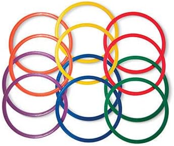 • Set includes 12 circular rings in six colors - red, orange, yellow, green, blue and purple.