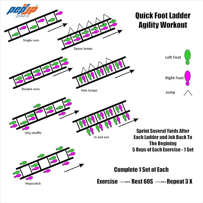 - Pepup Sports Speed Agility Ladder for Reflex Training - Break Proof Speed Ladder - Perfect for Football, Soccer, Basketball, Exercise Equipment for Home Gym Equipment - with Carry Bag, 20 ft 12 Rung