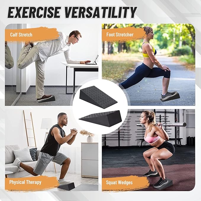 - Squat Wedge Boost Strength Performance - The slant board for squats can improve the poor mobility of your ankles, knees, and buttocks by raising your heel during stretching, allowing you to maintain the correct movement posture. Moreover, under the action of the squat wedge for heel elevated squat, you can release pressure from your lower back, knees, buttocks, and ankles while squatting, enhancing your core strength and reducing the chance of injury.
