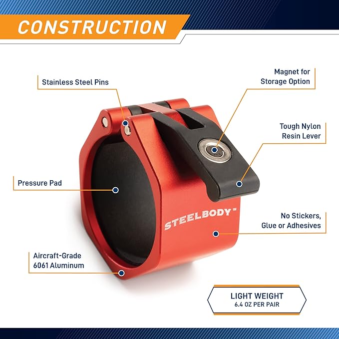 - DURABLE AND LIGHTWEIGHT - The OBC-6 Lockjaw collars are made of durable lightweight aircraft grade 6061 aluminum. The lightweight but powerful aluminum makes these Olympic collars very travel friendly.