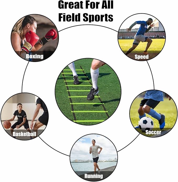 - GREAT FOR ALL FIELD SPORTS: Can be used for coordination training of all sports like Soccer , Basketball , Football , Track and Field, Baseball , Lacrosse, Field Hockey etc