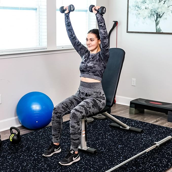 - [FLOOR PROTECTOR] Say goodbye to floor scratches during workouts! Our exercise equipment mat combines EVA foam softness with top EPDM rubber firmness, shielding your floor from equipment friction and extending its lifespan