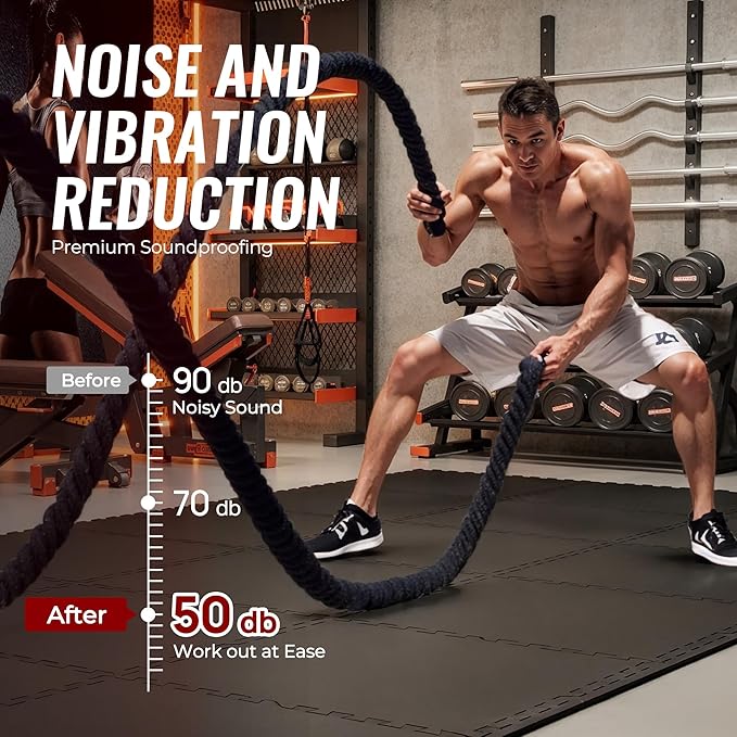 - 【Quiet and Cushioned】The soft foam layer provides excellent shock absorption, significantly reducing noise and vibrations. You can focus on your workout without disturbing your family or neighbors, allowing you to fully immerse yourself in your fitness routine.