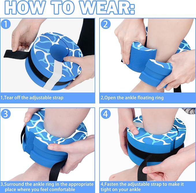 - Easy to Adjust And Wear: Float ring pulled apart to expand size,The inner circumference size can be adjusted to a range from 8 in(20cm) to 13 in (33cm). Perfect for arm and ankle sizes. Adjustable size design allows you to easily put on and take off the Water Ankle Weights conveniently.