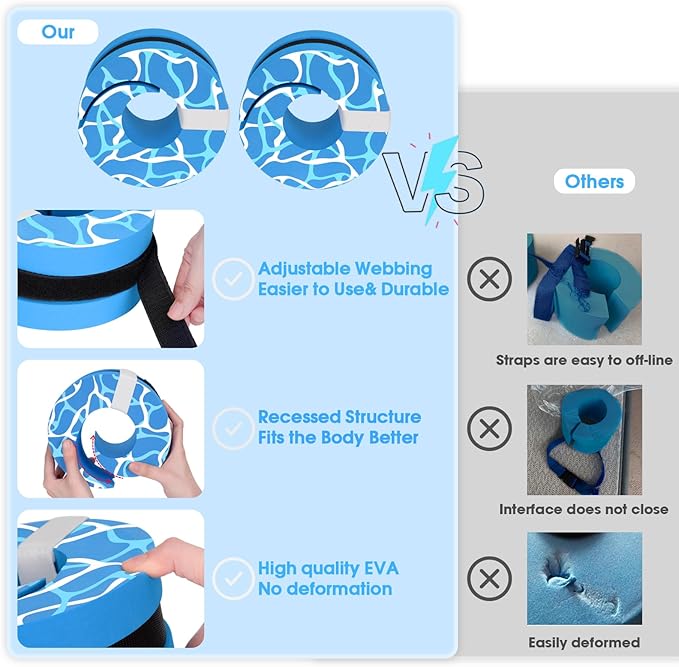 - Preferred Material: The Aquatic Cuffs are made of High Density EVA foam material , which is lightweight, portable, odorless, non absorbent, suitable for a variety of water sports. It is safe and durable, ensure long life when used in pool water.