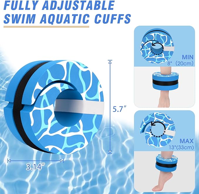 - Upgraded Design: Compared with others on the market, Our Swim Aquatic Cuffs are ergonomically designed with a recessed structure, enabling it to fit around the ankle, wrist or arm. Stronger wrapping keeps the cuff stay in place when using in the water