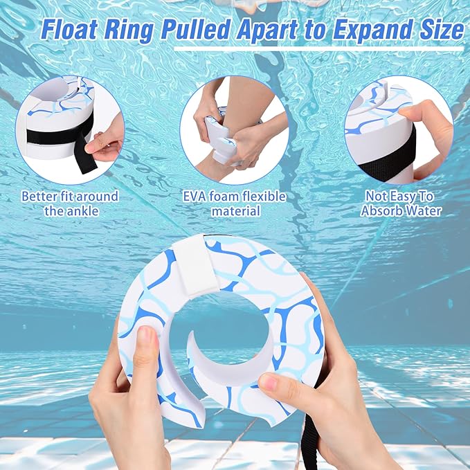 - Easy to Adjust And Wear: Float ring pulled apart to expand size,The inner circumference size can be adjusted to a range from 8 in(20cm) to 13 in (33cm). Perfect for arm and ankle sizes. Adjustable webbing design allows you to easily put on and take off the Water Ankle Weights conveniently.