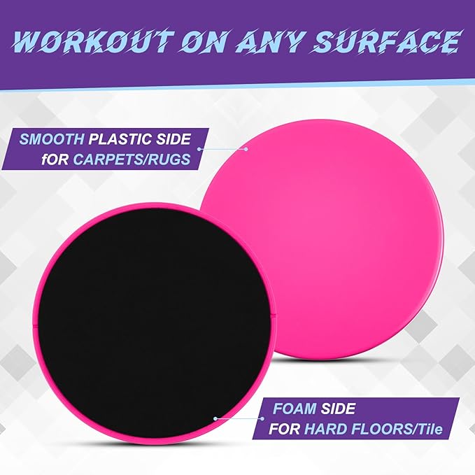 - Dual Sided Design: the gliding discs adopt dual sided design, plastic (smooth) surfaces can be applied for carpets, foam surfaces are applicable for hardwood floors or tiles, which can be adapted to a variety of venues and meet your different needs, providing a good aid for your training