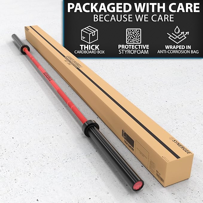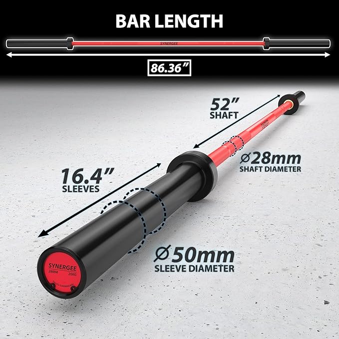 - ★ FITTER, FASTER, STRONGER ★ - With a loadable sleeve length of 16.4 inches (20 kg) and 13 inches (15 KG), our barbell can carry heavy loads, helping you push out of your comfort zone and reach your potential. Created by athletes, for athletes, our Synergee Staff have witnessed members of our Synergee Community crush their PRs with the Games Bar, which is exactly why we created it.