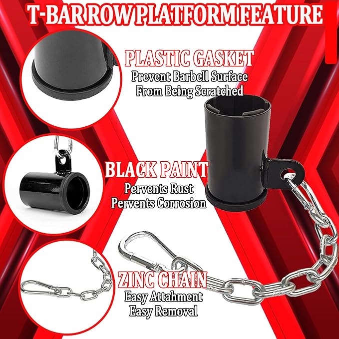 • 💪Sturdy Material - This T-bar Row Platform Landmine Attachment is made of thick steel to resist wear and oxidation, its ears are made with high strength spot welding technology. Durable 3.15 inch climbing hooks and 8 small chains as connections that can withstand over 400 pounds of pull, making it an ideal accessory for core strength training.