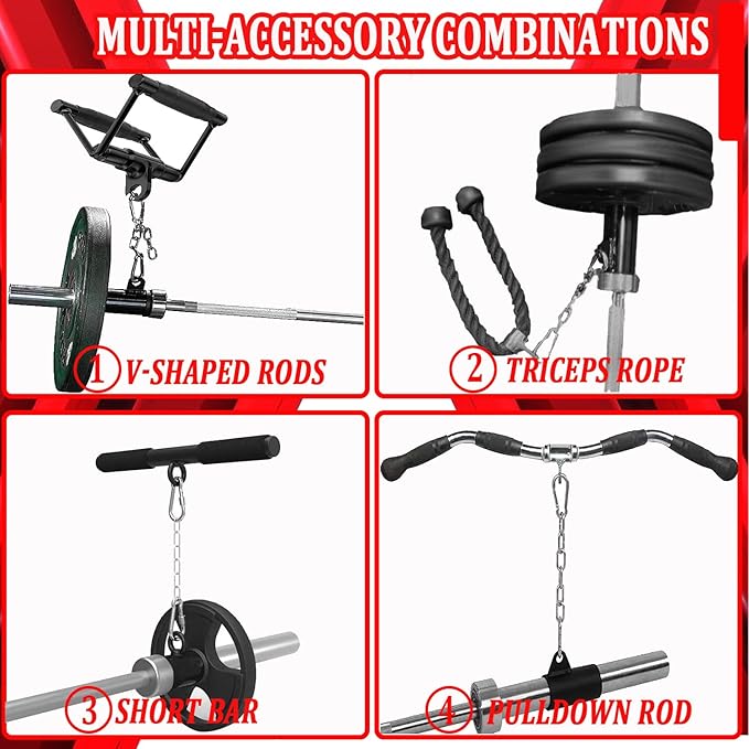 - 💪Features - With eight linked chains, you can change the position of the carabiner on the extension chain or remove the extension chain according to your workout. Built-in plastic ferrules, well reduce the wear and tear between the protective barbell barrel and the barbell bar, while protecting the inner wall and the bottom for the barbell bar, there will be no scratches or paint loss on your favorite fitness equipment.