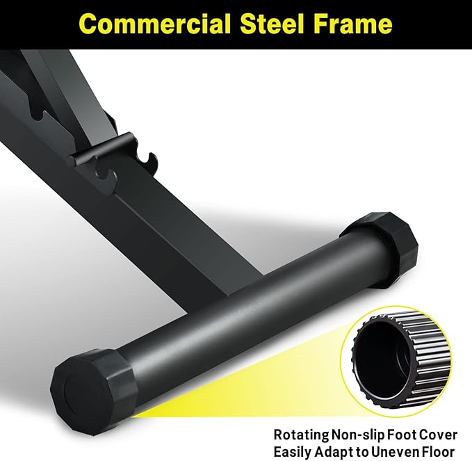 - 【Upgraded Steel】 Passed professional weight-bearing tests 700LBS. Heavy commercial grade steel, 1.5mm thick steel pipe. Unique triangular support structure. Wider and thicker square steel tube is 2.4''L * 1.2''H. Longer & thicker round tube base 18.5''L *1.2'' Dia. Greatly increase the stability, safety & the durability of the workout bench. No shaking! Full body workout to get the best effect.