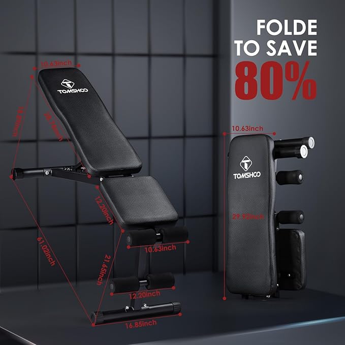 • 【Ergonomic Design】 - Covered with premium leather and padded with thickened cushion with high elasticity and great air permeability, TOMSHOO Weight Bench is wear-resisting and sweat-proof, perfect for long periods of training on your chest, shoulders, back,and more.