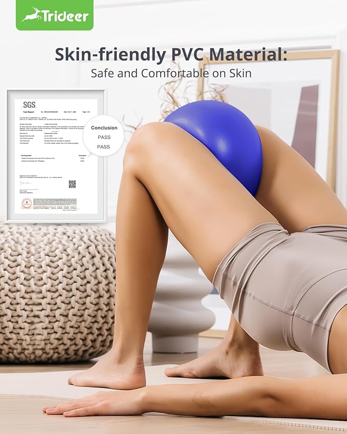 - rofessional Design And High Quality: Small pilates ball is made from soft low-odor flexible. Small exercise ball for core is made from PVC. This anti-burst and non-slip 9 inch diameter ball is designed to remain elastic and squishy when fully inflated. Barre ball 9 inch is slightly textured and keep slight sticky to stay in place smooth while performing yoga Pilates ballet HIIT Core ball barre is used in physical therapy exercises and workout.n.