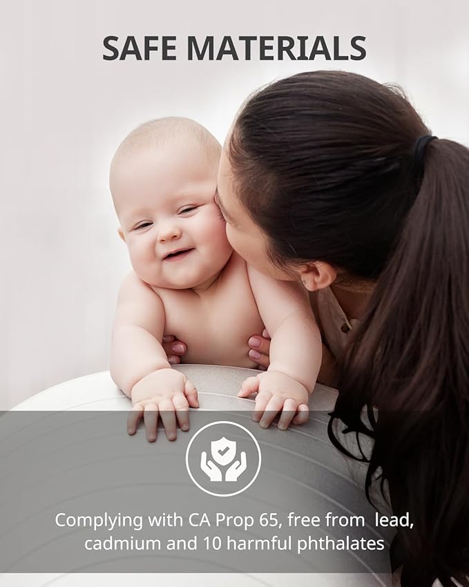 - SAFETY AND COMFORT- The exercise ball is crafted from PVC material; meticulously manufactured to be free from harmful heavy metals such as Pb, Cd, Hg, and 10 other heavy metals; safe for pregnant women and children