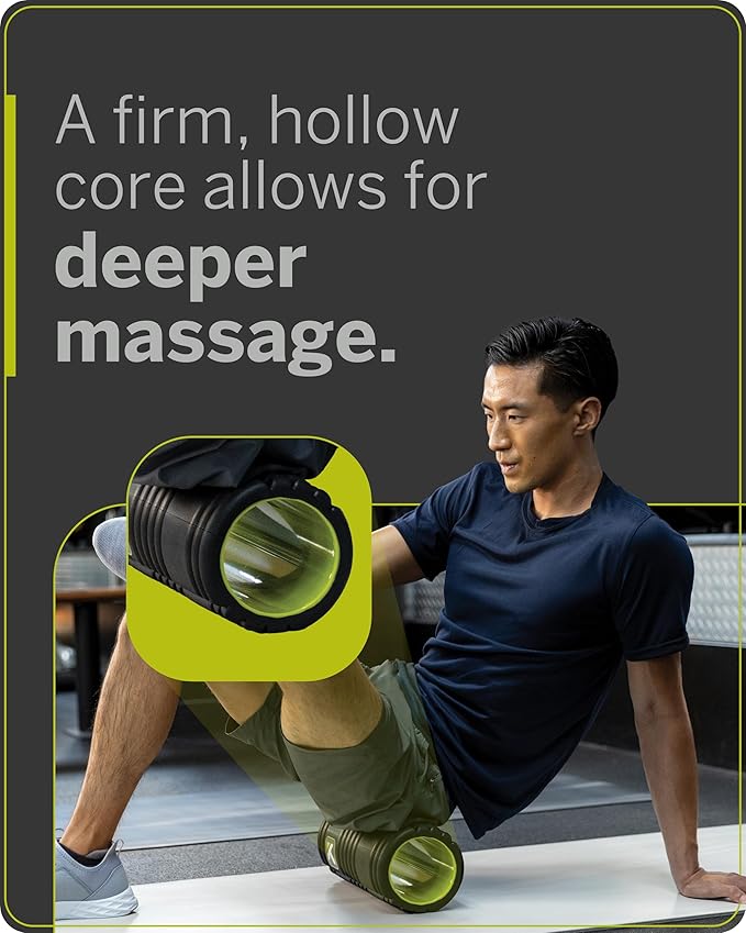 - DEEP TISSUE MASSAGE – EVA-foam-wrapped, hollow core design is firmer than traditional foam rollers, delivering a deeper compression-like a sports massage on tight muscles, knots, and kinks to achieve comfortable, effective, and targeted muscle recovery