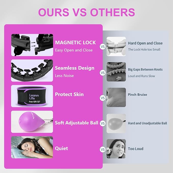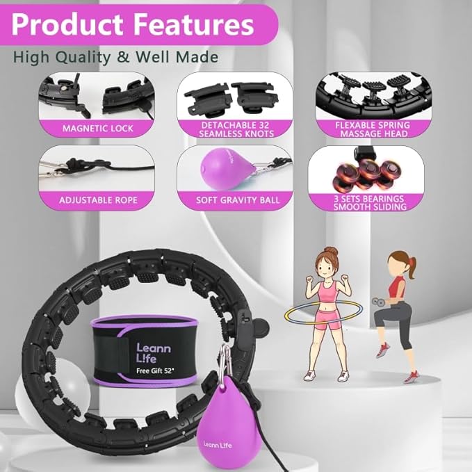 - HIGH QUALITY BLACK HOOP-COLORDUL BALL | The black version hoops have multiple colors ball to fit your taste. Our product has magnetic lock which makes many times improvement. The hoop knots are sturdy, lightweight, seamless construction with high-quality ABS plastic, and quieter and faster to rotate. Free Waist Trimmer to protect your skin.