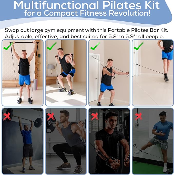 - CRUSH YOUR FITNESS GOALS ANYWHERE: Train anywhere with our portable home gym equipment. Perform various exercises like squats, pullbacks, & bicep curls to target multiple muscles effectively with our workout equipment for home gyms.