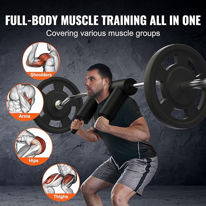 • Full-Body Muscle Workout: It is a versatile training equipment that assists you in achieving a balanced workout for various muscle groups throughout your body. This squat bar weight bar can be used to exercise major muscles in the chest, abdomen, back, thighs, calves, forearms, neck, and shoulders.