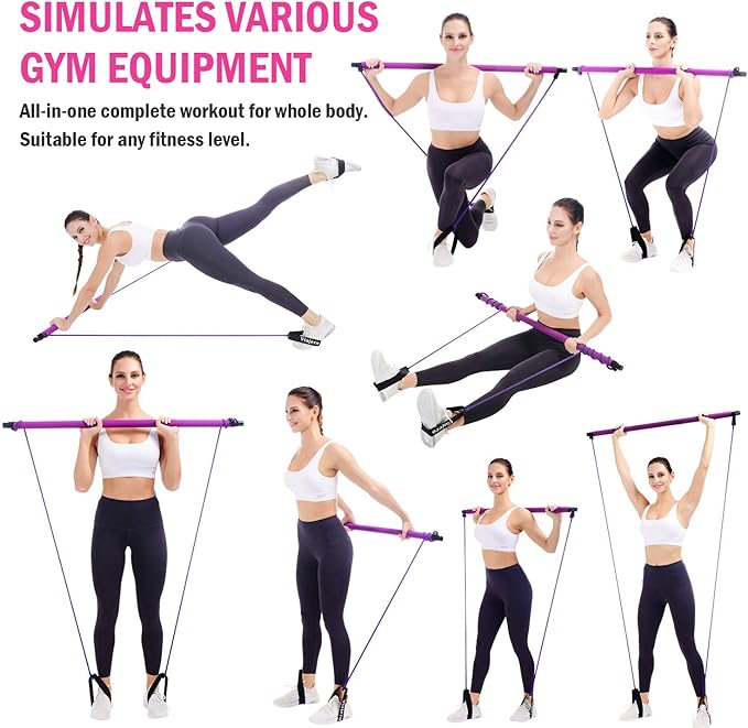 • 【All-in-one Powerful Gym Equipment】Viajero Pilates stick is designed as an all-in-one gym equipment without the gym to shape body, build muscle, lose weight, and provide a crossfit workout. Tones arms, chest, abs, glutes, legs and butt. Simulates various gym equipment with an all-in-one complete workout- squats, bench press, curls, rowing, etc