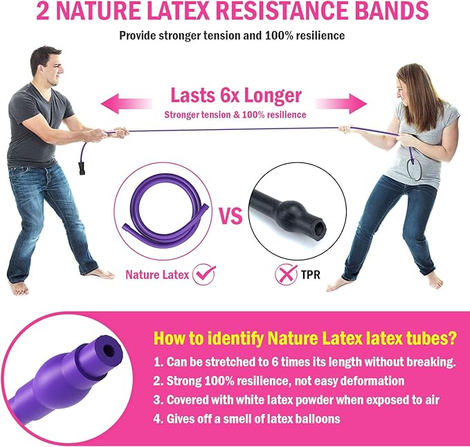 • 【Nature Latex Resistance Bands with Adjustable Tension】Viajero Pilates stick features 2 pics nature latex resistance bands that can be stretched to 6 times its length without breaking. Simply roll the tubes around the bar to reach your desired amount of tension for a variety of exercises for an all-over-body yoga strength workout.