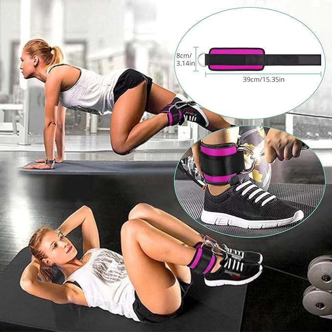 - 【Resistance Band& Ankle Straps】Non slip fabric resistance band improve your butt and leg workouts and see the difference you can make in the physical appearance of your hips, glutes, hamstrings, and quads. The cable machine attachment for all your favorite glute and leg cable exercises, including glute kickbacks, hip abductors, lunges and more.